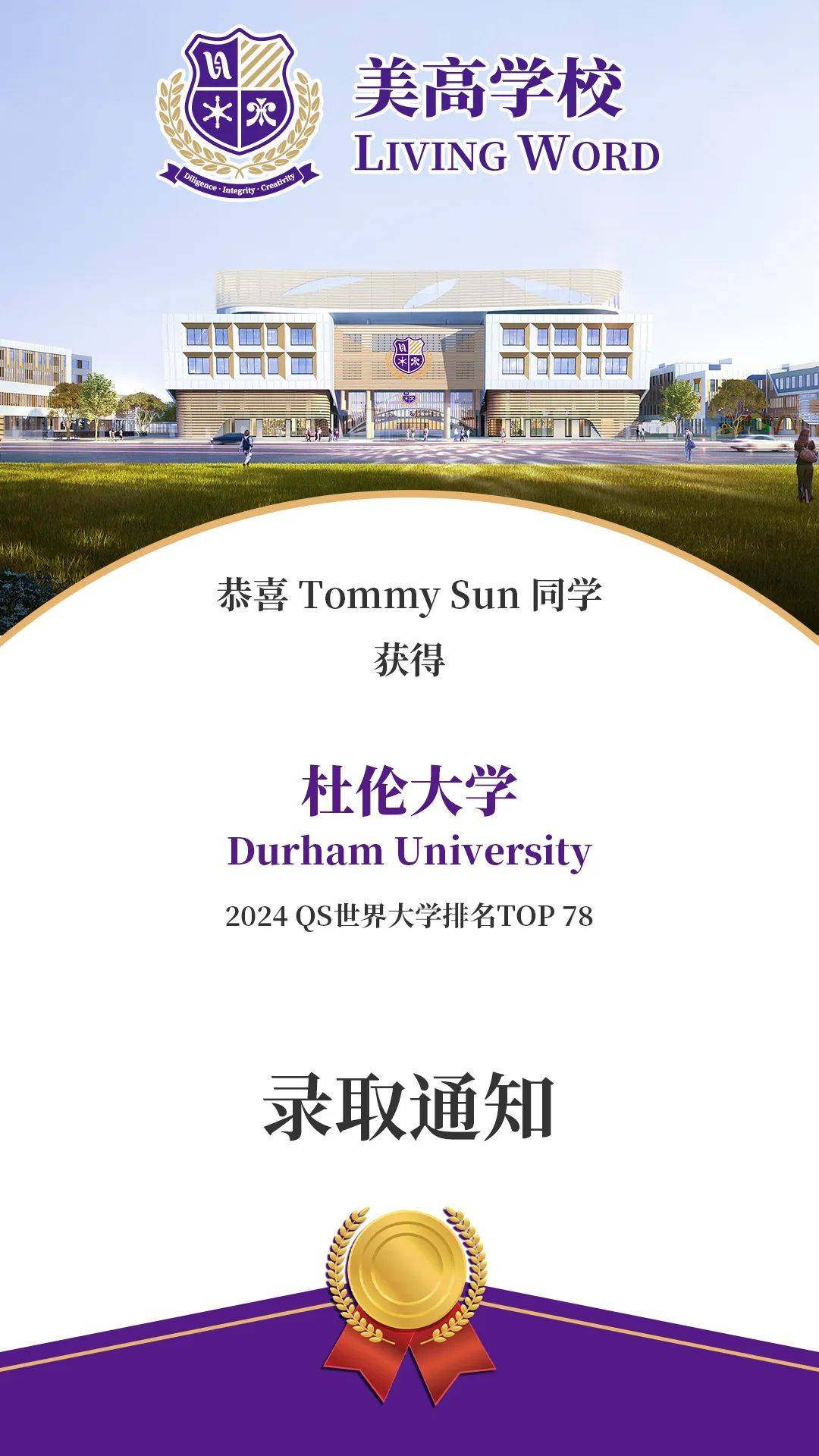 恭喜上海美高學(xué)校學(xué)子Jason Dong