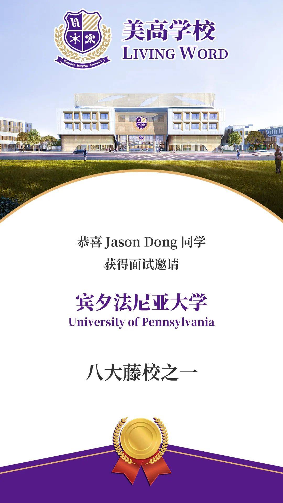 Congratulations to our student Jason Dong for receiving an interview letter from The University of Pennsylvania