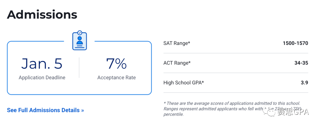 根據(jù)U.S NEWS官方數(shù)據(jù),本科生錄取的平均GPA是3.9,總體錄取率為7%,但國(guó)際生只有3.2%。2023年中國(guó)學(xué)生賓大總錄取人數(shù)在12人左右。