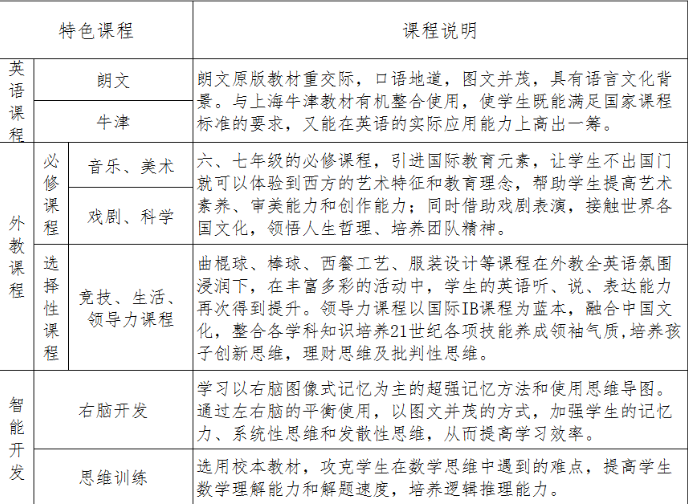 課外活動:夯實基礎(chǔ),開設(shè)英語輔助課程,奠定扎實的英語基礎(chǔ);活動豐富,各類社團和校園文化活動,全面培養(yǎng)學(xué)生興趣愛好。