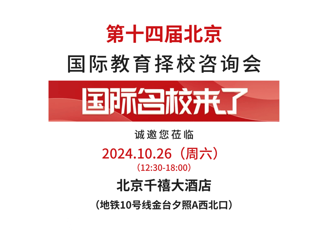 為了幫助廣大有意轉軌國際化教育的家庭提供更好的擇校規(guī)劃,一站式解決他們的擇校難題,北京第十四屆國際名校來了擇校咨詢會將在10月26日于北京千禧大酒店·二層宴會廳舉辦。屆時,我們不僅會邀請北京各區(qū)60+所各類國際化名校的校長/招生官與家長面對面溝通洽談,10+位業(yè)內校長大咖和擇校發(fā)表主題演講,還有多位擇校/升學/留學等不同領域的咨詢專家為家長一對一答疑,歡迎廣大家長和考生參與!
