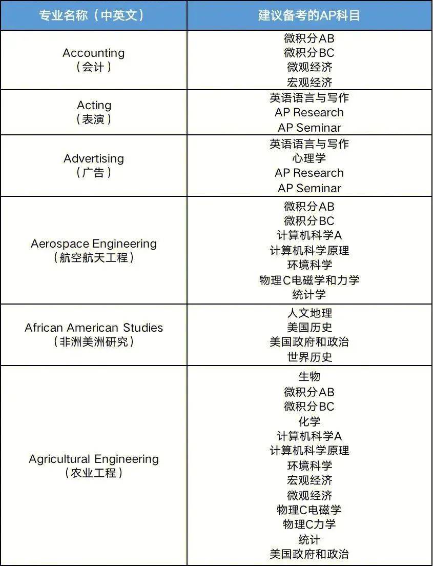 2. 從不同目標(biāo)專業(yè)看AP選課建議