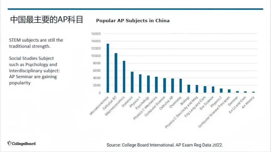 最受中國學(xué)生歡迎的AP科目(來自college board)